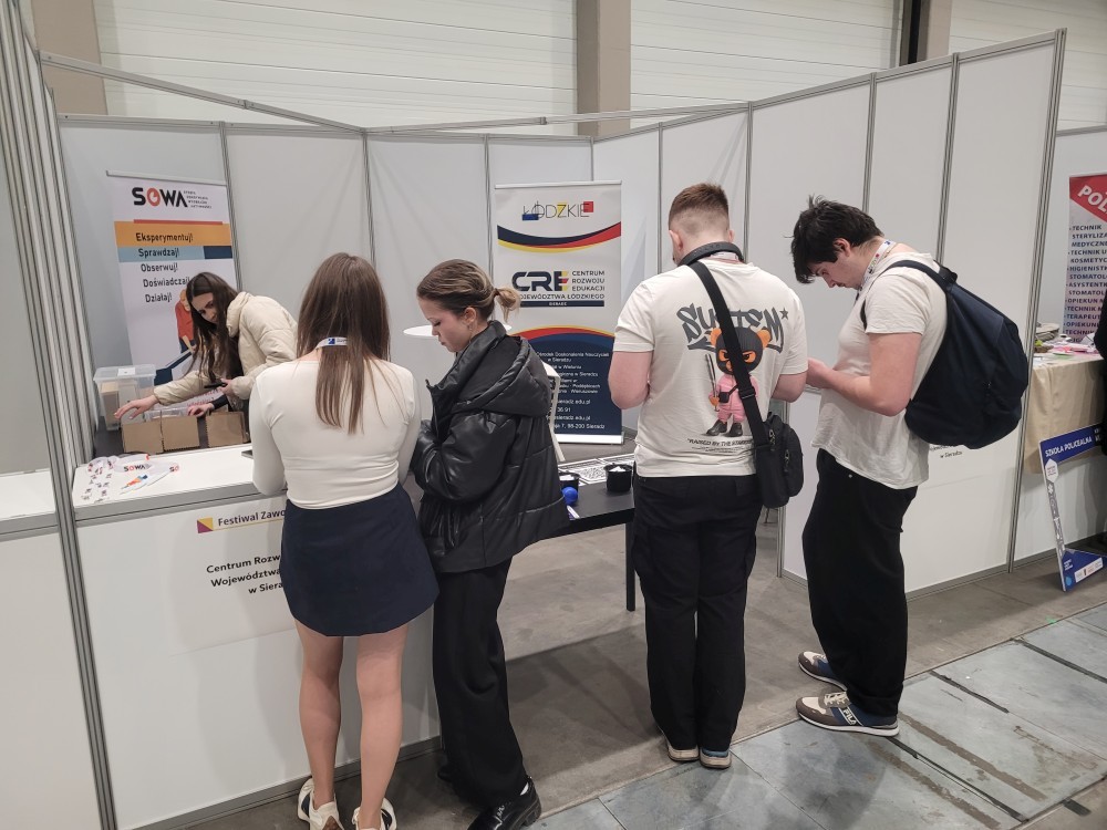 Stoisko CREWŁ w Sieradzu cieszyło się zainteresowaniem ze strony uczniów, którzy mogli podjąć kreatywne działania, rozwiązać zagadki logiczne, wykonać testy osobowościowe czy predyspozycji zawodowych pod okiem pracowników CREWŁ w Sieradzu.